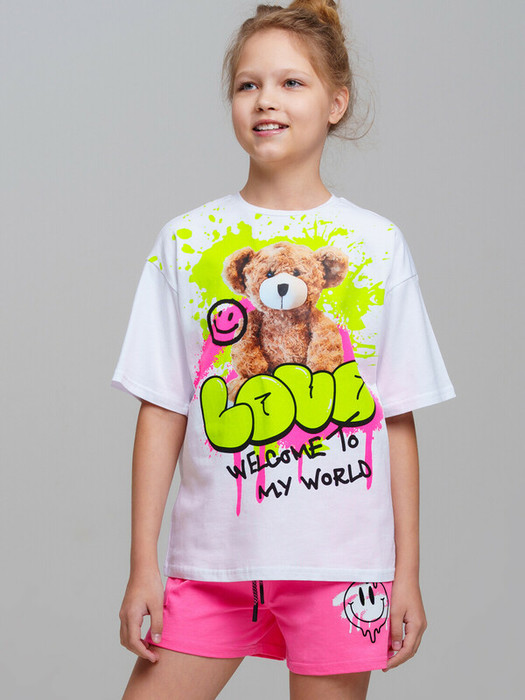 Футболка для девочки подростка. Футболка с высоким содержанием хлопка 95%. Благодаря наличию эластана в составе ткани изделие проще в уходе и держит форму. Модель выполнена из качественного и приятного на ощупь трикотажа.