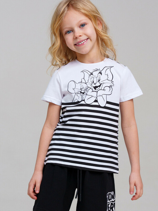 Футболка детская для девочки. Футболка из качественного и приятного на ощупь трикотажа джерси с высоким содержанием хлопка 95%. Благодаря наличию эластана в составе ткани изделие проще в уходе и держит форму. Модель выполнена из качественного и приятного на ощупь трикотажа.