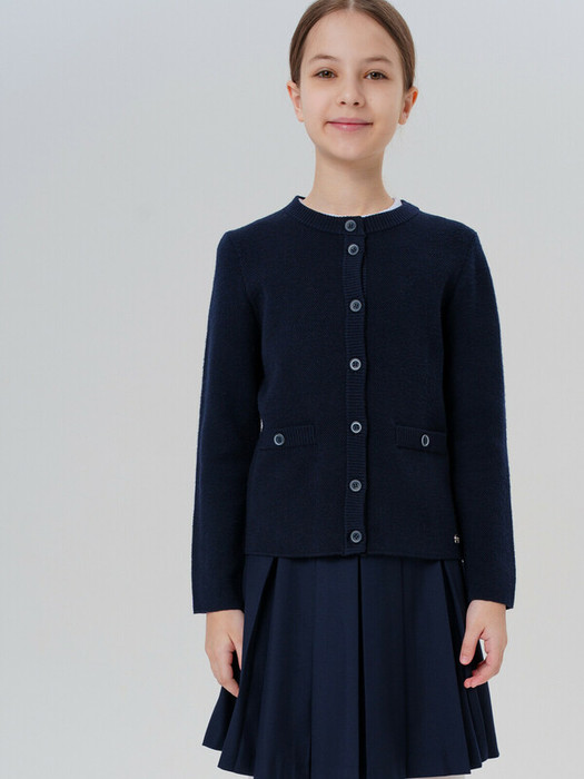 Стильный школьный темно-синий кардиган на пуговицах для девочки-подростка.