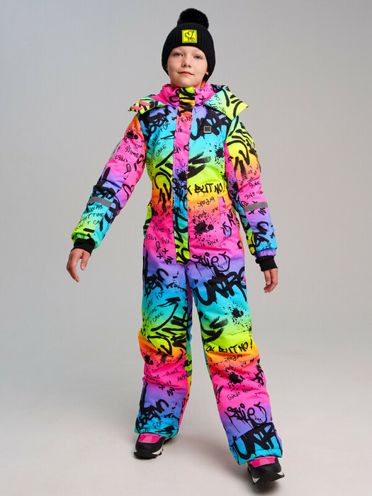 Мембранный материал делает этот яркий и модный комбинезон непромокаемым: мембрана не пропускает влагу снаружи, но выводит её изнутри, что крайне важно во время подвижных игр и занятий спортом.