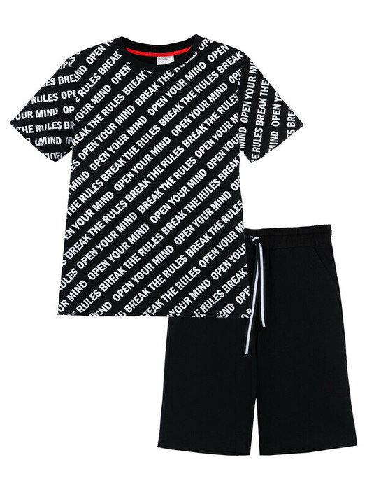 Комплект: футболка, шорты. Высокое содержание хлопка 95%. Благодаря наличию эластана в составе ткани, изделие проще в уходе и держит форму. Оптимальная посадка: шорты не сползают при движении. Эластичный пояс со шнурком.