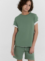Легкий детский хлопковый костюм для мальчика. Рубашка прямого кроя с коротким рукавом и застежкой на кнопки. Классический воротник, накладные карманы. Свободные шорты на резинке со шнурком для регулировки. Удобные боковые карманы и карманы-карго.