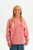 Детская джинсовая оверсайз куртка-рубашка с капюшоном для мальчика. Модель выполнена из светло-голубого денима. Свободный крой, застежка на кнопки. На груди — накладной карман. В оформлении использованы яркие принты. Сзади — декоративные стрелки.