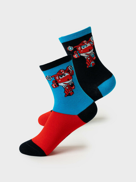 Набор из трех пар детских носков с яркими принтами персонажей Super Wings для мальчика. Удобная резинка не сдавливает ногу, а на стопе — аккуратная жаккардовая надпись с размером. Материал — мягкий хлопковый трикотаж.