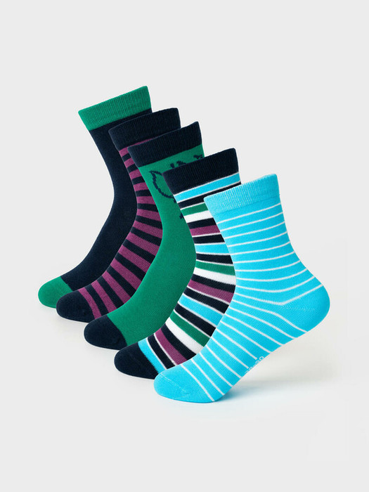 Набор из пяти пар детских носков для мальчика. В комплект входят модели с полосками, однотонные и с изображением зайчика. Удобная резинка не сдавливает ногу, а на стопе — аккуратная жаккардовая надпись с размером. Материал — мягкий хлопковый трикотаж.