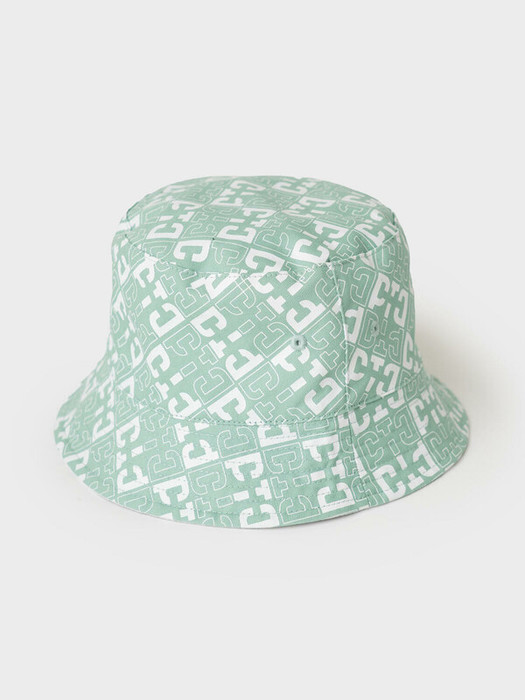 Двусторонняя панама для девочки подростка. С одной стороны она полностью покрыта светло-зелёным принтом с логотипами, а с другой — однотонная белая с небольшим логотипом по центру. Панама выполнена из лёгкой хлопковой текстильной ткани, идеально подходящей для тёплой погоды. Поля средней ширины, мягко ниспадают и аккуратно отстрочены.