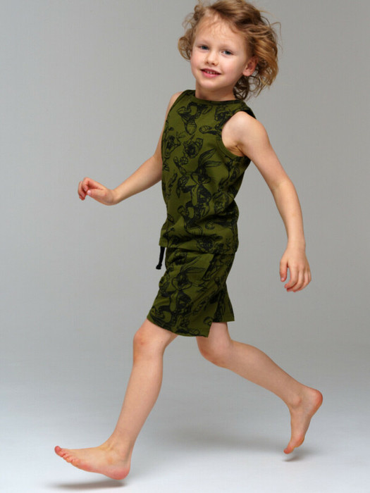 Пижама: майка, шорты из качественного и приятного на ощупь трикотажа джерси. 100% хлопок. Шорты regular fit с эластичным поясом со шнурком. Карманы в боковых швах.