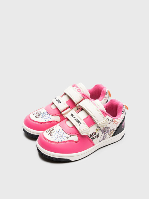 Кеды детские для девочки. Трендовые кеды с принтом Том и Джерри (Tom & Jerry). Кроссовки  выполнены из искусственной кожи, обладающей высокими эксплуатационными свойствами. В обуви стоит текстильная подкладка c высоким содержанием хлопка 80%, которая обладает высокой гигроскопичностью. Две липучка создают удобство при обувании. Профилированная съемная стелька из натуральной кожи с анатомической формой подсводника обеспечивает правильную нагрузку на стопу.  Формоустойчивый задник поддерживает стопу в правильном положении. Эргономичная форма колодки обеспечивает правильное формирование стопы ребенка. Двухсоставная подошва из ТПР  не скользит и устойчива к истиранию.