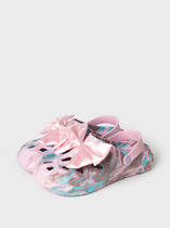Сабо для девочки подростка. Сабо из облегченного и прочного ЭВА с эффектом 3D. Модель декорирована объемным джибицом-бантом. Материал хорошо моется. Форма модели учитывает эргономику стопы. Модель имеет перекидной ремешок для лучшей фиксации обуви на ноге.