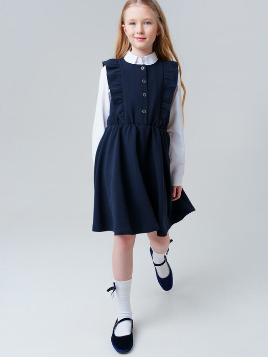 Темно-синее школьное текстильное платье сарафан для девочки-подростка