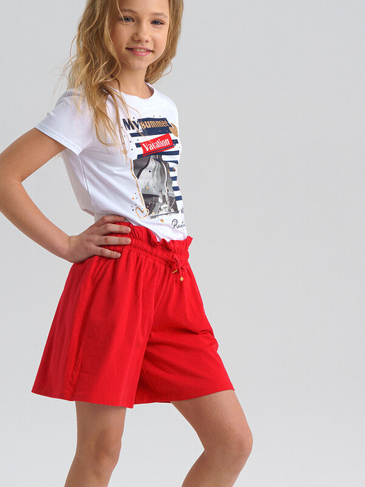 Шорты трикотажные. Размер изделия на фото - 140, параметры модели (см): рост 143, обхват груди-талии-бедер: 69-58-78. Высокое содержание хлопка 95%. Благодаря наличию эластана в составе ткани изделие проще в уходе и держит форму. Эластичный пояс.