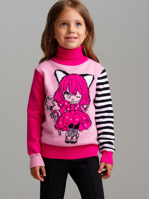 Свитер детский для девочки. Свитер из вязаного трикотажа с добавленим вискозы. Модный свитер жаккардовой вязки с высоким содержанием вискозы. Вискоза хорошо поглощает влагу, отлично пропускают воздух. Изделия приятны к телу, и не вызывают раздражения.  Модель из капсульной коллекции CATS DREAM. Соберите полный образ в едином стиле!