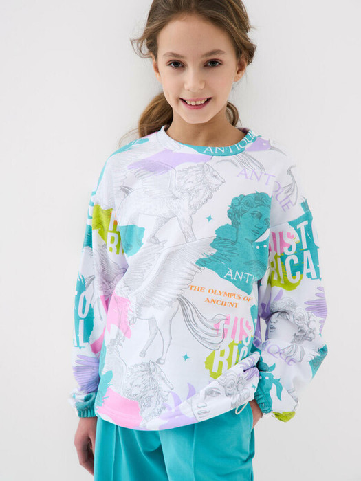 Свитшот оверсайз для девочки подростка. Выполнен из хлопкового футера без начеса. Манжеты оформлены эластичными резинками. Резинка с регулировкой стопперами по низу.