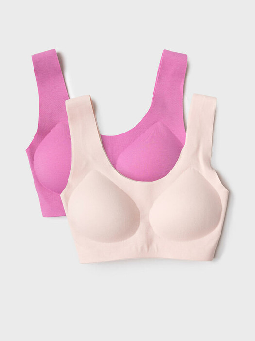 Набор два топа-бра без застежек для девочки подростка. Бесшовная технология. Изделие выполнено из эластичного трикотажа и имеет мягкие формованные чашечки для дополнительного комфорта. Внутри по низу предусмотрена эластичная тесьма для лучшего прилегания к телу.