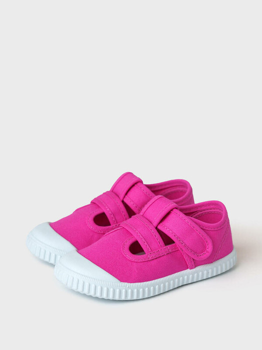 Яркие детские закрытые текстильные сандалии для девочек. Дышащая ткань и 100% хлопковая подкладка делают детские туфли подходящими для летних прогулок. Удобная застежка липучка позволяет регулировать обувь на любой подъем. Съемная текстильная стелька выполнена из 100% хлопка. Облегченная подошва из ПВХ гибкая, не скользит и устойчива к истиранию. Подошва имеет защиту носочной части.