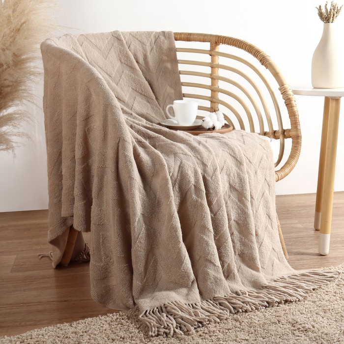 Совместные покупки Сургут Товары для дома и дачи Покрывала, пледы — Плед акриловый с кистями 300г/м2 Бежевый зигзаг