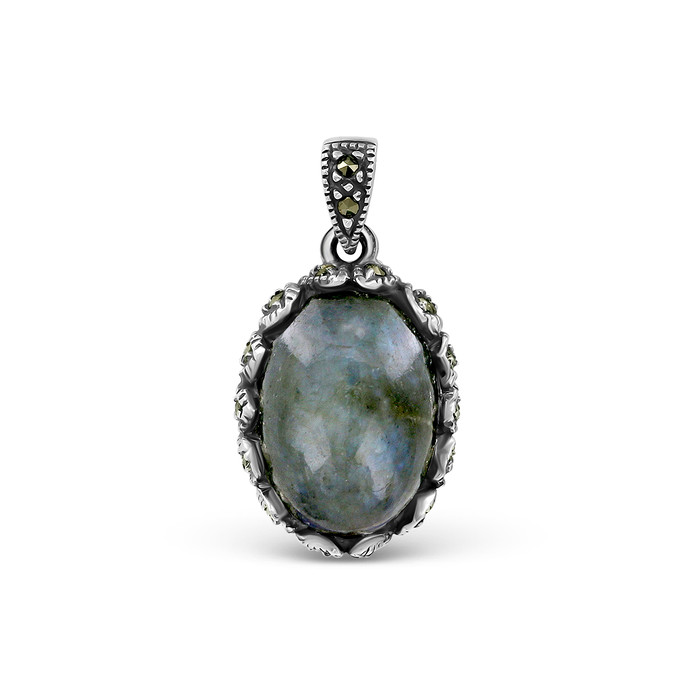 Подвеска из чернёного серебра с нат.лабрадоритом и марказитами 925 пробы MN00719