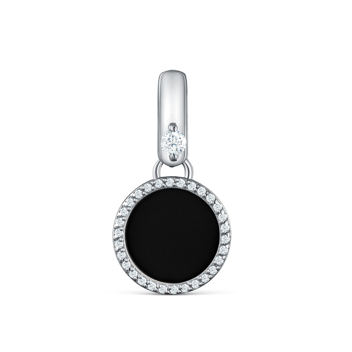 Совместные покупки Сургут Ювелирные украшения и бижутерия Подвески — Подвеска из серебра с чёрным агатом и фианитами родированная П-2691-Р-Ча