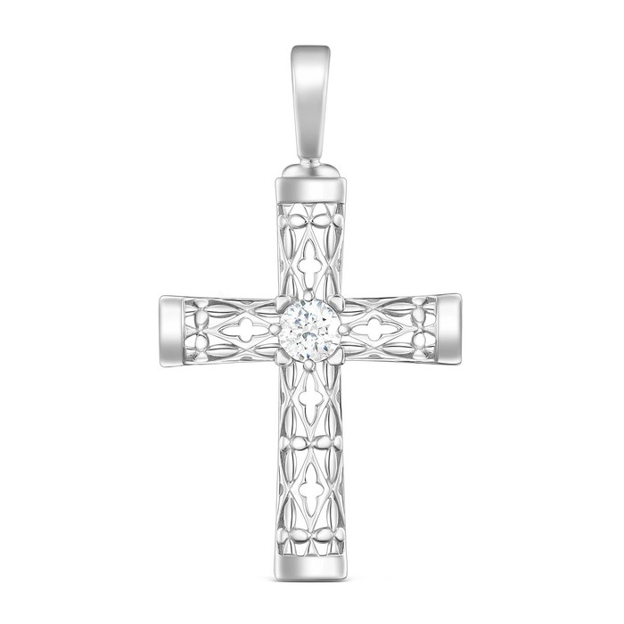Подвеска из серебра с фианитом родированная - Крест