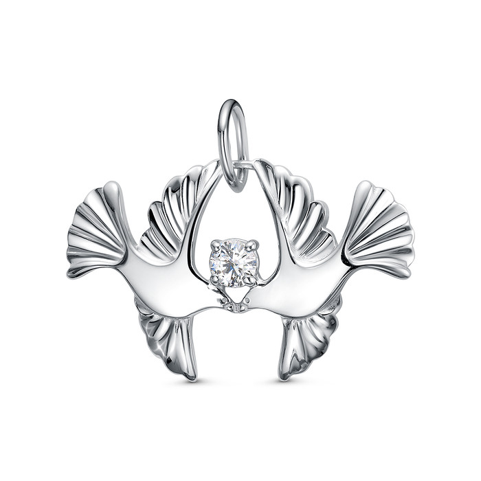 Совместные покупки Сургут Ювелирные украшения и бижутерия Подвески — Подвеска из серебра с фианитом родированная - Птицы 3101030778