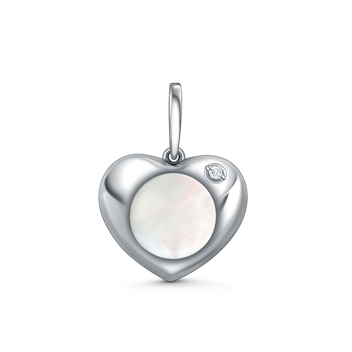 Совместные покупки Сургут Ювелирные украшения и бижутерия Подвески — Подвеска из серебра с перламутром и фианитом родированная - Сердце П-2689-Р