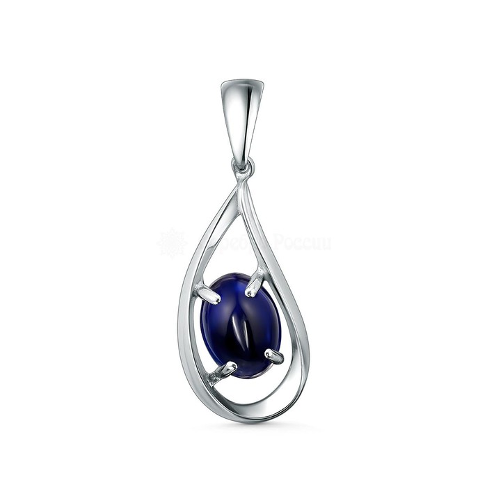 Подвеска из серебра с синим янтарём родированная 04-803-0054-07
