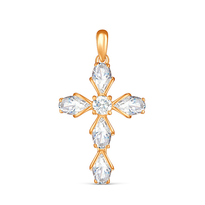 Совместные покупки Сургут Ювелирные украшения и бижутерия Подвески — Подвеска в виде креста из золочёного серебра с фианитами 925 пробы S3180361010з