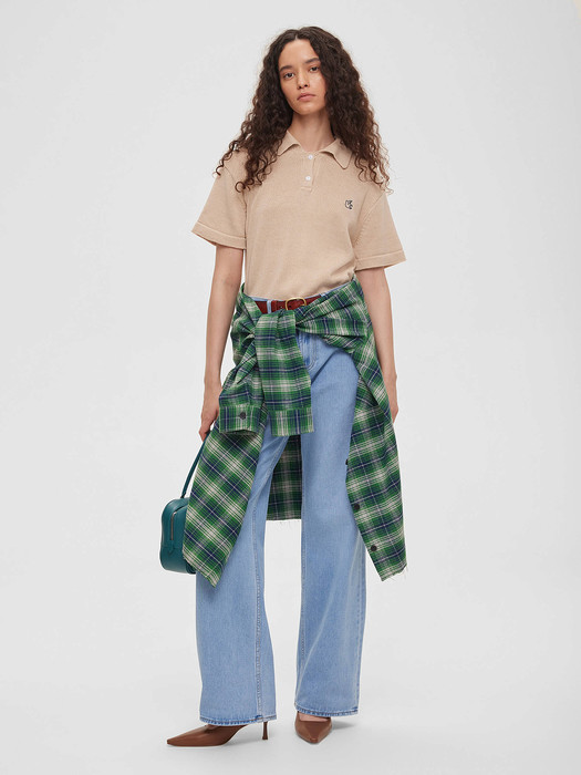 Совместные покупки Сургут Женская одежда Джемперы, свитеры, водолазки — Поло с коротким рукавом из хлопка с вышивкой, бежевый