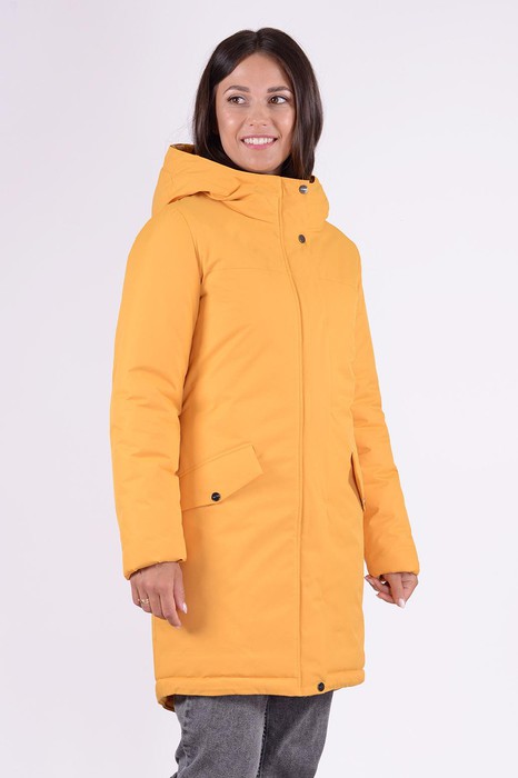 Современное утепленное полупальто-парка прямого силуэта, выполнена из нового вида ткани с покрытием которое дополнительно защищает от ветра и дождя . Центральная застежка на молнию дополнена планкой и фирменными кнопками. Карманы листочки с клапанами.Талию по спинке подчеркивает кулиса. Длина изделий по спинке ок. 93 см,по полочке 87см, длина рукава ок. 66 см.В изделии использована система утепления Air Twin (от 0 °С до -20 °С) Р-ры: 42-52 Состав: полиэстер 100%, утеплитель: синтепон Air Twin 150 г/m 2 Цвет:охра Цвет одежды может незначительно отличаться от оригинала.