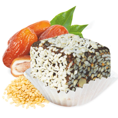 Полезные свойства:финики – единственный фрукт в котором содержится 23 вида различных аминокислот и оптимальный набор витаминов и минеральных веществ, что реально препятствует старению организма. Они идеально сочетаются с кунжутной пастой, чрезвычайно богатой кальцием и цинком. Данный десерт – идеальный продукт для поддержания сил на работе, в путешествиях или занятиях спортом.
