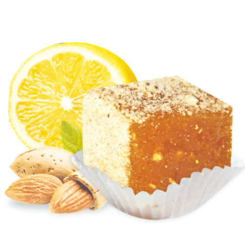 вода, лимон, патока, сахар, крахмал кукурузный, миндаль, кукурузная мука, агар-агар, куркума.