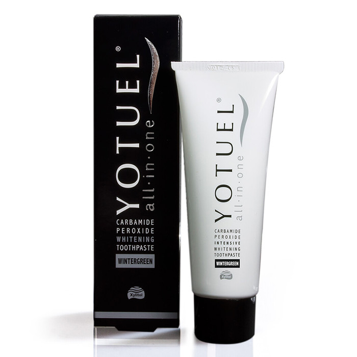 Зубная паста Yotuel All in one относится к отбеливающим профессиональным низкоабразивным зубным пастам, отбеливающий эффект которых основан на действии пероксида карбамида в концентрации 3%. Зубная паста мало пенится и за счет мелких абразивных веществ мягко и эффективно отбеливает, не травмируя зубную эмаль при ежедневном регулярном использовании. Благодаря наличию в составе пасты ксилитола достигается противовоспалительный эффект. Зубная паста Yotuel All in one способствует бережному отбеливанию без повреждения зубной эмали и без изменения чувствительности зубов за счет кальция, фторидов и фосфатов. Таким образом компоненты зубной пасты Yotuel All in one принимают участие в процессе реминерализации и эффективной борьбе с зубным налетом и кариесом.