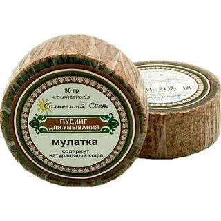 Солнечный Свет»Пудинг для умыванияМУЛАТКАсодержит натуральный кофе 90 гр Способ применения: снять защитную пленку и пробковую «корочку». Использовать для умывания вместо мыла. Подходит для ежедневного применения. Состав: пальмовое масло, кокосовое масло, касторовое масло, масло сладкого миндаля, натуральный молотый кофе, гидроксид натрия, парфюмерная композиция. Миндаль сладкий — Prunus dulcis. Легкое питающее масло — замедляет старение клеток и устраняет воспалительные процессы на коже, нормализует функцию сальных желез и предупреждает расширение пор. Придает коже здоровый, красивый цвет Оказывает противовоспалительное, омолаживающее, питающее, увлажняющее, противоожоговое, болеутоляющее и смягчающее действие. Кофеин — Coffeinum. Кофеин активизирует кровоснабжение, применяется для улучшения цвета и вида кожи, оказывает дренажное и укрепляющее воздействие, улучшает эластичность и упругость кожи. Способствует предотвращению рака кожи. Кофеин стимулирует расщепление жиров, улучшает микроциркуляцию крови, жировой и водный обмен, смягчает и защищает эпидермальный слой, ускоряет метаболические процессы