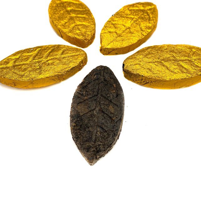 Прессованный в форму листка весом 5-7 г. купаж из листьев пуэра разного грейда. Чай прошёл стандартную технологию свойственную для тёмных пуэров и обладает лёгкими землистыми нотами.
