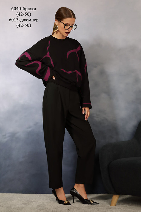 Стильные укороченные брюки из смесовой ткани, зауженные к низу. Брюки свободные вверху за счет односторонних складок. В боковых швах прорезные карманы с листочками . Пояс – кокетка со шлевками. На задних половинках - прорезные карманы в рамку. Отлично сочетаются как с классическими блузами и рубахами, так и со свободными свитшотами и джемперами.