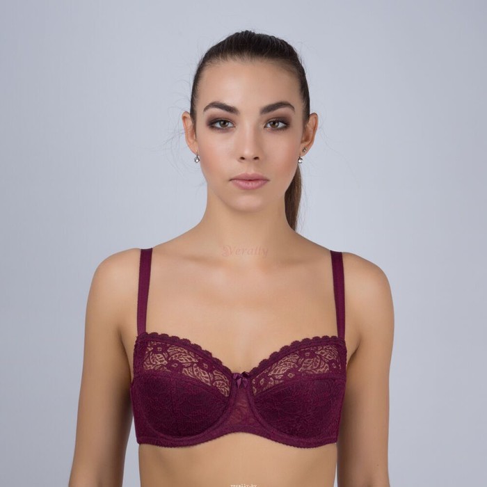 Бюстгальтер из неэластичного кружева, нижняя часть чашки на дубляже, боковые детали из эластичного полотна. Боковые детали уплотнены упругими пластинами