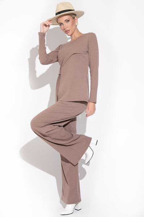 Представляем Вам элегантный и стильный брючный костюм из трикотажа "лапша" - идеальный вариант для повседневного и офисного гардероба. Очень уютный и удобный костюм, что делает его идеальным выбором для осени и зимы. Брюки свободного кроя, талия на резинке, карманы. Туника оригинального кроя с длинным рукавом. Длины:( туника 44-50р- 68 см, брюки 107 см).