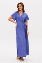 Стильное платье, выполнено в плательной ткани с добавлением хлопка и вискозы. Платье по переду с застежкой на пуговицы, горловина платья с воротником стойкой. Платье декорировано накладными нагрудными карманами с клапаном и пришивной пуговицей, в боковых швах функциональные карманы. Верх платья по фигуре, юбка платья с расклешением. Спереди платья по низу две шлицы. Пояс платья съемный, выполнен из основной ткани с застежкой на полукольца.