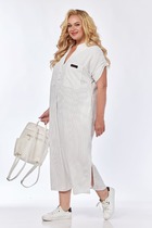 Платье в длине макси, выполнено из эластичного гипюра, обработано трикотажной эластичной подкладкой телесного цвета. Лиф отрезной по т линии талии. Обработаны чашки. Верх рукава собран на резинку. Рукав прямой до линии локтевого сгиба, имеет притачную деталь в форме клеша. Застежка - потаная молния в боковом шве.