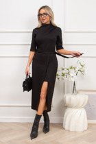 Платье полуприлегающего силуэта из замши (имитация замши). Воротник стояче-отложной, по центру застежка на декоративную молнию. Рукав втачной, по низу манжета с застежкой на петлю и пуговицу. Платье отрезное по линии талии. По переду накладные карманы с клапанами и пуговицами, на уровне линии талии шлевки для ремня. В нижней части переда функциональные карманы. По переду лифа талиевые вытачки. На спинке кокетка, рельефы и вытачки. В комплект входит ремень из основной ткани. Обращаем ваше внимание, что фурнитура может незначительно отличаться от фото.