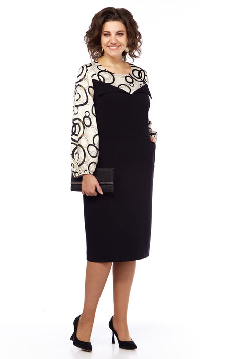 Платье женское, полуприлегающего силуэта, выполнено из 2х видов ткани: из блузочного атласа и основной плательной с легким стрейчем. Перед отрезной по линии талии с нагрудными и талиевыми вытачками. Карманы функциональные от подреза с отрезными бочками. Отлетные детали верхней части лифа от кокетки заутюжены в низ. Спинка со шлицей в среднем шве и талиевыми вытачками. Рукав втачной одношовный с резинкой и сборкой по низу. В левом боковом шве тесьма-молния, потайная.