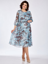 Платье-рубашка из шитья с центральной застежкой, рубашечным воротником и фигурным низом. По спинке платье удлиненное. Плечо спущенное, по груди декоративные клапаны. Съемный пояс. Платье-комбинация из хлопка в качестве подкладки.