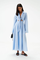 Платье-сорочка на бретелях из струящейся ткани. Длина миди. Застёжка на потайную молнию в боковом шве.