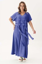 Восхитительное платье полуприлегающего силуэта из текстильной ткани цвета фуксия с вышивкой. Круглый вырез изделия обработан окантовкой. Платье с цельнокроеными рукавами. Линия талии завышена, эффектно подчеркнута сборкой. Длина изделия по спинке от плечевого шва до низа изделия — см. Рост фотомодели — 170 см.