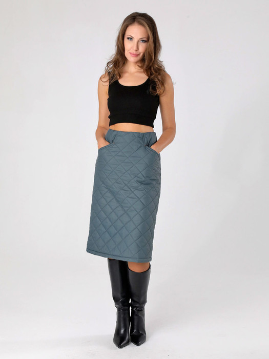 Юбка утепленная прямого силуэта с небольшим расклешением книзу, с карманами и разрезом на задней половинке. Отсутствие притачного пояса позволяет регулировать посадку изделия по талии. РЕКОМЕНДАЦИЯ: в больших размерах и в случае маленькой разницы между ОТ и ОБ выбирайте изделие на размер больше обычного.