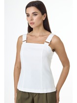 Рубашка прямого свободного кроя выполнена из текстильного полотная песочного цвета в белую полоску. Характеристики: прямой свободный крой, отложной воротник на стойке, застежка центральная на петли пуговицы, по переду крупные карманы, рукав спущен, по рукаву декоративные складки, по низу рукава широкая манжета, спинка отрезная с декоративными складками, низ изделия с плавным срезом.Длина по спинке 80 см, длина рукава от края горловины 74 см.
