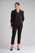Рубашка свободного кроя выполнена из приятной к телу текстильной костюмной ткани с рисунком, имитирующим трикотажное плетение нитей.  Данная модель – это идеальный вариант для на каждый день. Это модель, с которой можно экспериментировать и создавать множество образов.           Рубашка выполнена в стиле оверсайз. По линии груди декоративные клапаны, по низу декорированные кромкой материала. Рукав имеет спущенную пройму и по низу обработан манжетой с застёжкой на пуговицу. Полочка имеет функцию застёжки на стильные пуговицы. Спинка немного длиннее полочки. Низ изделия декорирован кромкой из основного материала.