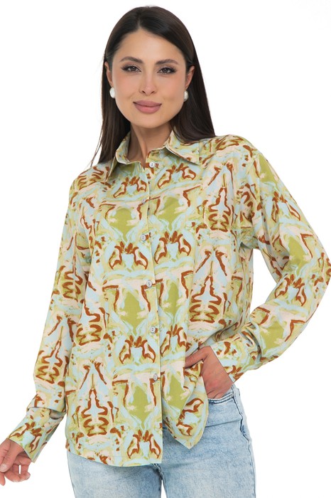 Представляем стильную рубашку оверсайз от Diolche, которая станет настоящим ХИТом Вашего гардероба! Рубашка из натуральной ткани высочайшего качества. Удобная, комфортная вещь на все случаи жизни! Рубашка с дизайнерским принтом прямого кроя со спущенным плечом, свободная посадка не сковывает движений, складка на спинке обеспечивает дополнительное удобство. Идеально подходит под любой низ. Прекрасно смотрится как в заправленном состоянии, так и на выпуск. Классическая рубашка с воротничком на стойке. Застёгивается спереди на пуговицы. Рукав втачной, длинный. По спинке сделана кокетка. Вискозная комфортная ткань, безупречная посадка!