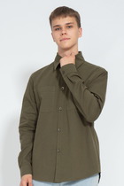 Мужская рубашка приталенный крой, два кармана, подворачивающийся рукав roll-up, застёгивается на пуговицу.