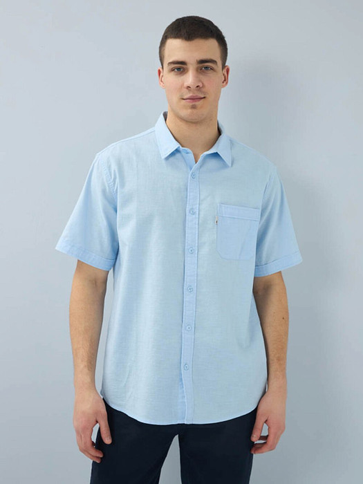 Рубашка изготовлена из высококачественной смесовой ткани (лен с хлопком), мягкая и приятная на ощупь.